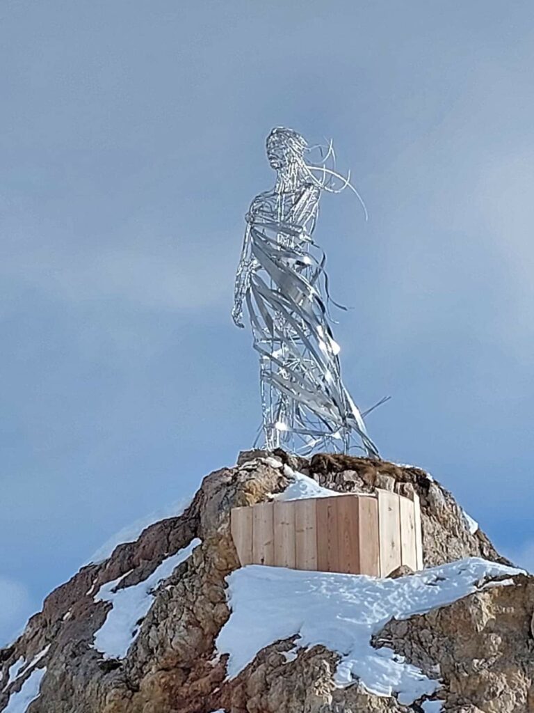 Sun Col di Rosc olache rua su la doi forenadoes che vegn, da Cianacei e da Dèlba, fèsc bela parbuda la statua de la Contessa de Dolèda.