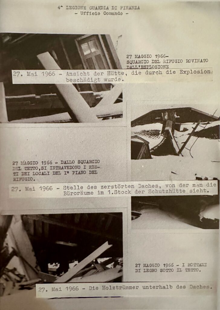 Es handelte sich keinesfalls um ein Attentat, bei dem 50kg Sprengstoff hinter der Eingangstür durch das Öffnen der Türe gezündet wurden. Der Ort der Explosion war vielmehr die Küche und der Grund dafür ein schadhafter Ofen. Laut Zeitzeugen wurde auf der Hütte ein Gasofen benutzt und aus diesem dürfte wohl Gas ausgeströmt sein. Der Finanzer Bruno Bolognesi befand sich zum Zeitpunkt der Explosion nicht vor der Eingangstüre zum Gebäude, sondern offensichtlich auf dem Klosett, welches sich unmittelbar angrenzend an die Küche befand. Möglicherweise hat er durch das Anzünden einer Zigarette die Explosion sogar selbst ausgelöst. Jedenfalls handelte es sich bei diesem Ereignis nicht um ein Attentat, bei dem bewusst der Tod von Menschen in Kauf genommen wurde, sondern um einen tragischen Unfall. Man hat diesen tragischen Unfall anschließend bewusst politisch missbraucht und einen Anschlag reklamiert, den es so einfach nicht gegeben haben kann.“