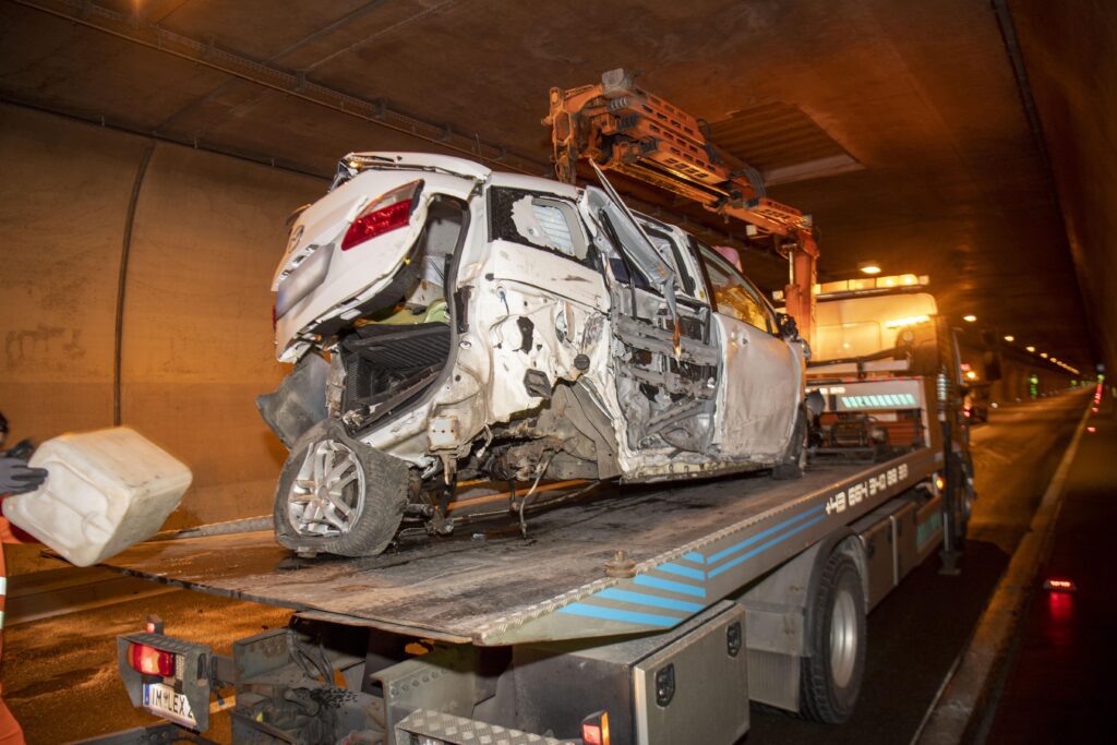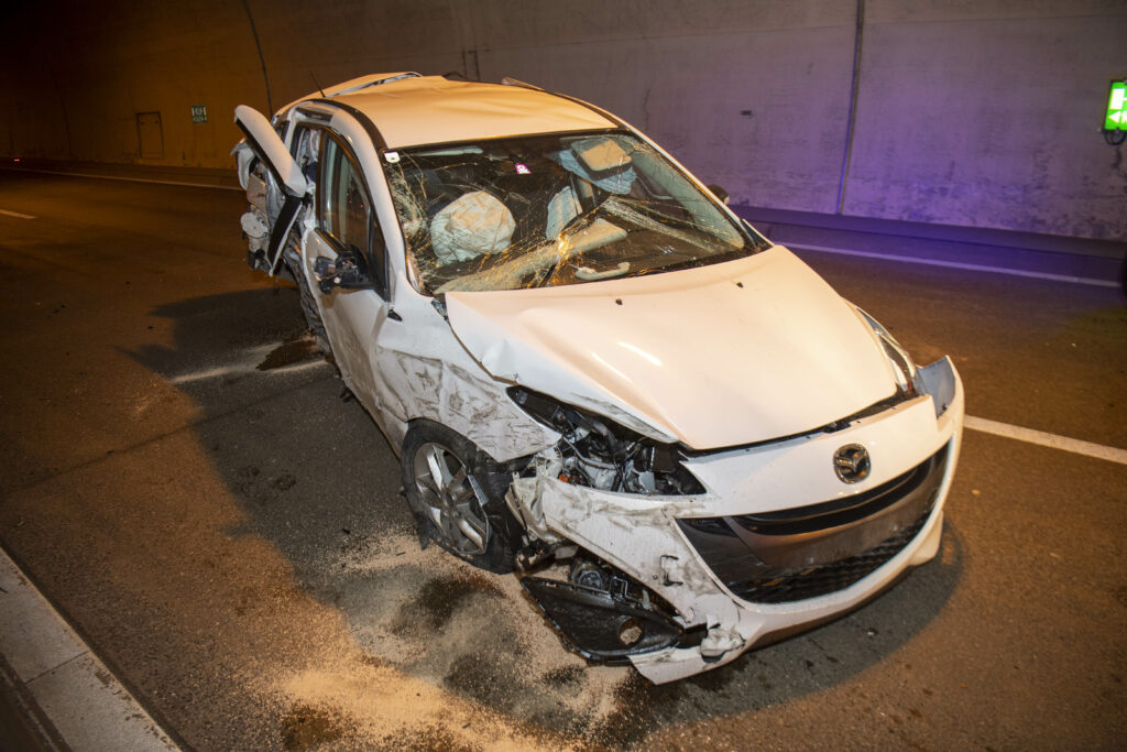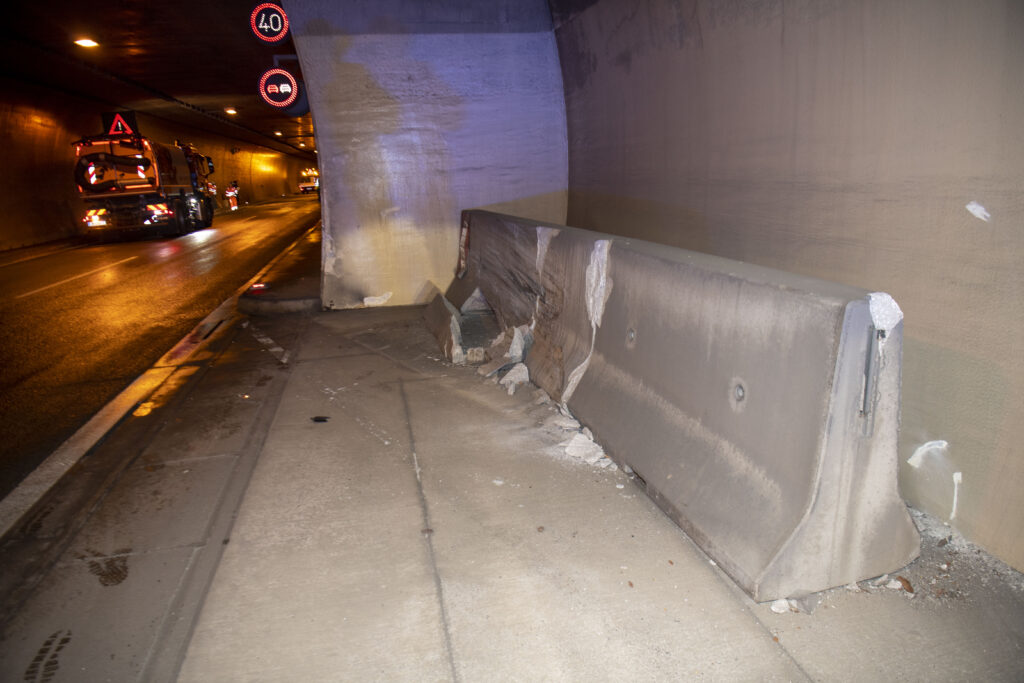Durch den Aufprall wurde diese in Richtung Tunnelwand verschoben. Der Pkw schleuderte durch die Wucht des Aufpralles an die gegenüberliegende Tunnelwand und kam auf der Überholspur in entgegengesetzter Richtung zum Stillstand.