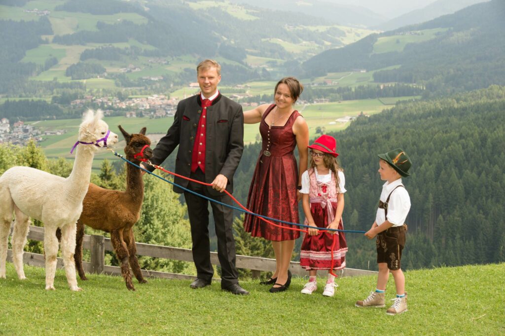 Eugen Ladstätter mit seiner Familie und den beiden Alpakas; Foto: Privat