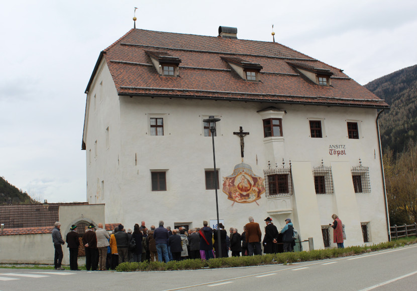 Die Wahl für den Versammlungsort der Südtiroler Heimatpfleger fiel auf das Dorf Obervintl mit seinem geschichtsträchtigen Ansitz „Töpsl“. Nicht von ungefähr, denn Eigentümer und Restaurator Hubert Mayr renovierte das große Gebäude vor Jahren in vielen Stunden Kleinstarbeit und rettete so den Ansitz vor dem Bagger. Heute ist das Gebäude ein beliebter Ort, um Hochzeiten oder andere Feierlichkeiten zu veranstalten.