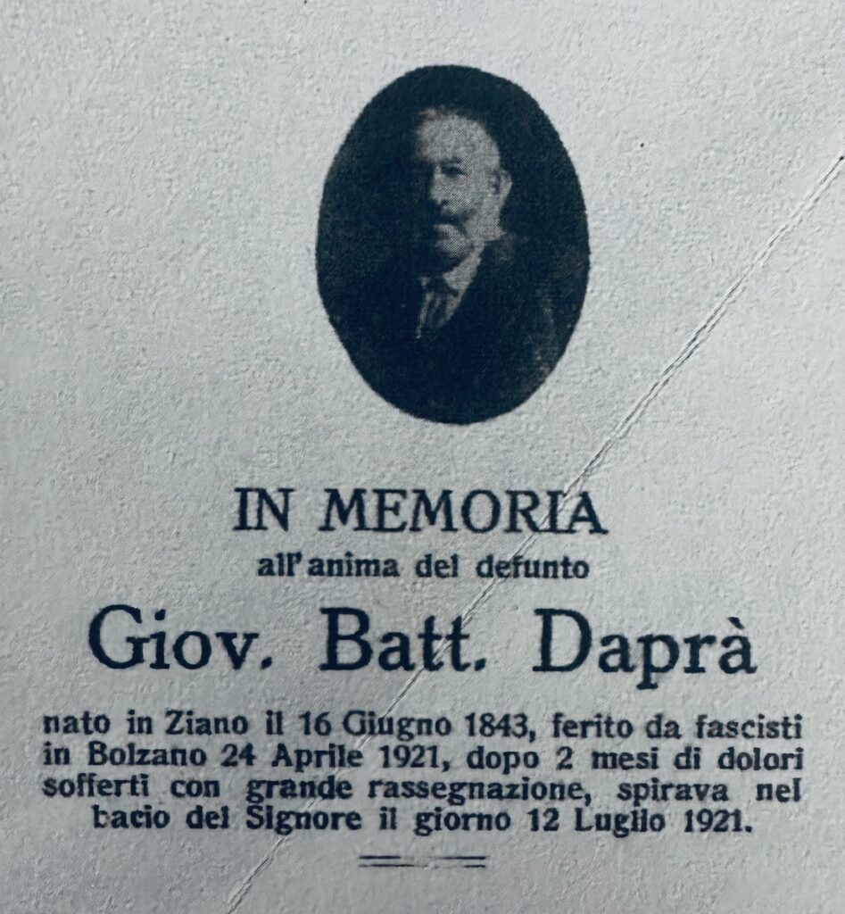 Als erstmals nach dem Ende des Ersten Weltkriegs wieder in Bozen eine Messe stattfinden konnte und für den 24. April 1921 ein „Südtiroler Trachtenumzug“ als Rahmenveranstaltung geplant war, fassten die Faschisten das öffentliche Tragen der Tiroler Tracht als Kampfansage auf. Am 16. April 1921 forderte das faschistische Zentralkomitee in Mailand die „Fasci“ von Brescia und Verona zur Teilnahme an einer Strafexpedition nach Bozen auf. In dem Schreiben hieß es: „Verehrte Freunde des Direktionskomitees der Fasci di Brescia und Verona – Der Fascio di combattimento von Bozen hat beschlossen, am Sonntag, den 24. des laufenden Monats, eine Kundgebung der Italianità zu veranstalten. Sie ist unbedingt nötig, da die Tiroler an diesem Tag in Massen in Tracht auftreten werden, um ihre Ansprüche auf die Stadt zu erheben, den äußersten Wachposten des Vaterlandes.“