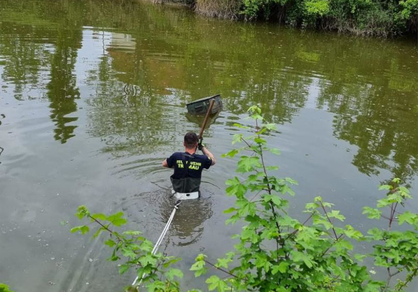 Im „Mandelteich“ in der Gemeinde Trumau entdeckte ein Mitarbeiter eine treibende Metallkiste und bat die Freiwillige Feuerwehr Trumau um Hilfe. An der Einsatzstelle angekommen, wurde nach Rücksprache und Lageerkundung mit der Bergung der Kiste begonnen, berichtet die FF Trumau. Mittels Wathose und Sicherung musste sich ein Kamerad bis in die Mitte des Teiches vorkämpfen, ehe er die Kiste erreichte.
