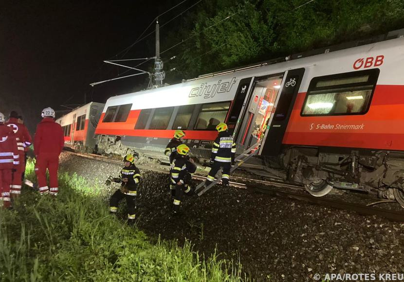 Kurz nach 22.00 Uhr entgleiste in Straß ein Triebwagen eines ÖBB-Personenzugs, der auf der Strecke zwischen Spielfeld und Ehrenhausen unterwegs war. Der 36-jährige Lokführer, der noch ein Bremsmanöver eingeleitet hatte, das aber vergebens war, erlitt laut Polizei leichte Verletzungen und wurde für die medizinische Abklärung in das Krankenhaus Wagna gebracht. Ursache für die Entgleisung war ein Murenabgang. Erdmassen und Geröll hatten die Gleise verlegt. Passagiere befanden sich keine im Zug.