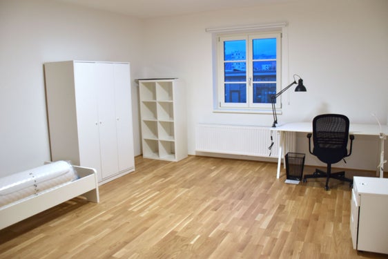 Il Campus dell’Euregio offre appartamenti condivisi arredati e comprensivi di sale comuni negli edifici ad angolo tra via Erzherzog-Eugen-Straße 25, 39 e Schlachthofgasse 14. Questi sono suddivisi in bilocali, trilocali e un quadrilocale. Le camere singole misurano tra i 14 e i 24 metri quadrati e sono dotate di letto, armadio, scaffale, scrivania e sedia da ufficio. Inoltre, gli appartamenti condivisi dispongono di cucina, bagno e anticamera e sono dotati di ventilazione del soggiorno, Wifi e vano cantina.