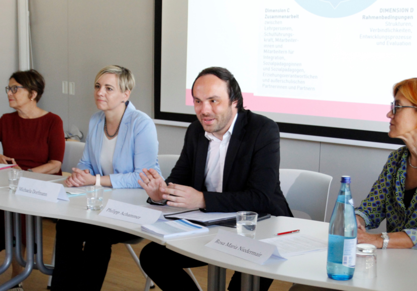 Schulinspektorin Rosmarie Niedermair, die den Bildungsschwerpunkt koordiniert, stellte die Zielsetzungen und die Maßnahmen im Detail vor. Sie verwies darauf, dass im Zusammenhang mit dem neuen Schwerpunkt neben der Frage nach dem Warum auch jene nach der bisherigen Qualität des Unterricht gestellt würden und auch die Frage, ob Schule trotz entsprechender Bestimmungen nicht inklusiv sei. Darauf könne nur geantwortet werden: „Der Unterricht bisher war weder schlecht, noch war das Schulsystem separativ. So aber, wie sich die Gesellschaft ständig verändert, muss sich auch der Unterricht weiterentwickeln. Alle Schulen sind daher aufgefordert, entsprechende Schulentwicklungsprozesse auf den Weg zu bringen und den Unterricht etwa durch die Implementierung von neuen Unterrichtsmodellen und Unterrichtsformen weiterzuentwickeln. Das ist alles andere als einfach, weshalb die Schulen auch entsprechende Unterstützung von der Bildungsdirektion, in erster Linie von der Pädagogischen Abteilung, erhalten.“