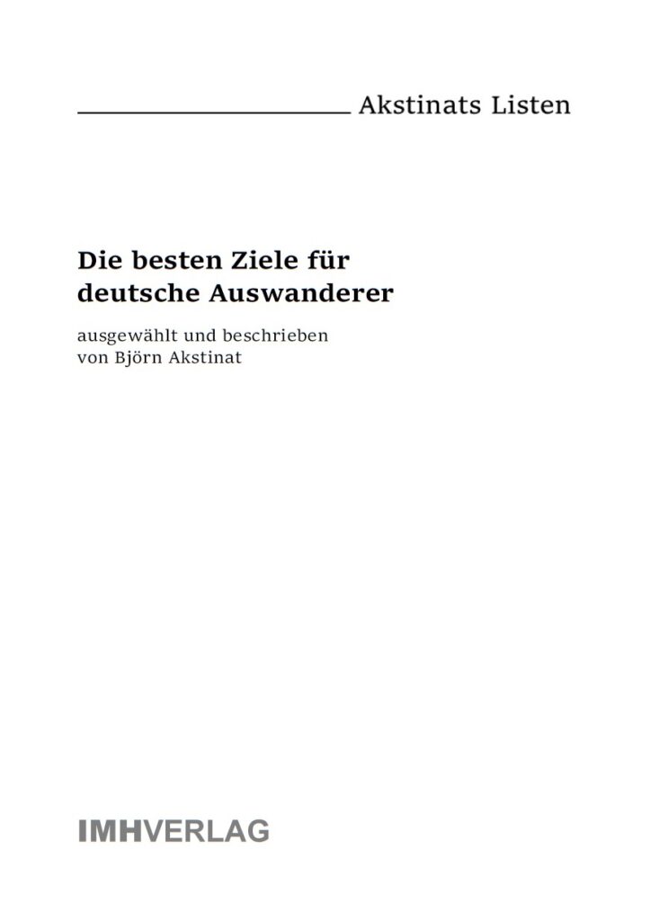 Das E-Buch „Die besten Ziele für deutsche Auswanderer“ ist nicht geeignet für Menschen, die nur kurz ins Ausland wollen – um dort ihren Lebensabend zu verbringen, mal Sonne zu tanken oder schnell viel Geld zu verdienen. Der Ratgeber sei vielmehr für diejenigen, die langfristig denken und einen geeigneten Ort für sich, ihre Kinder und ihre Enkel suchen, berichtet der IMH-Verlag.Â