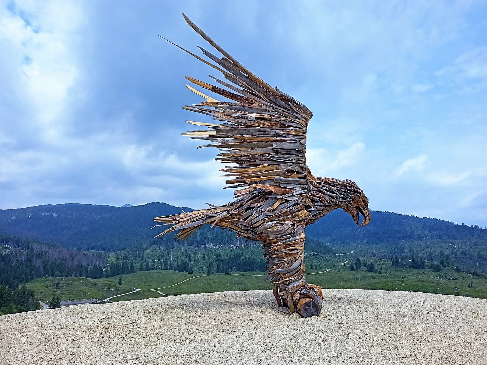 Domenica sarà anche l’cccasione per ammirare l’ultima opera di Marco Martalar: l’aqula Vaia di Marcesina, realizzata appunto con agli scarti di alcuni dei tantissimi alberi abbattuti sull’altipiano dalla tempesta Vaia