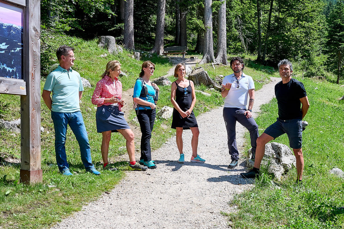 (Presidente del Parco Naturale Adamello Brenta), Tullio Serafini (presidente di Azienda per il Turismo Madonna di Campiglio), Laura Rossini (Assessore alle politiche sociali, servizi alla persona e famiglie del Comune di Pinzolo) e Daniele Bolza (Comitato amministrativo delle Regole Spinale Manez).