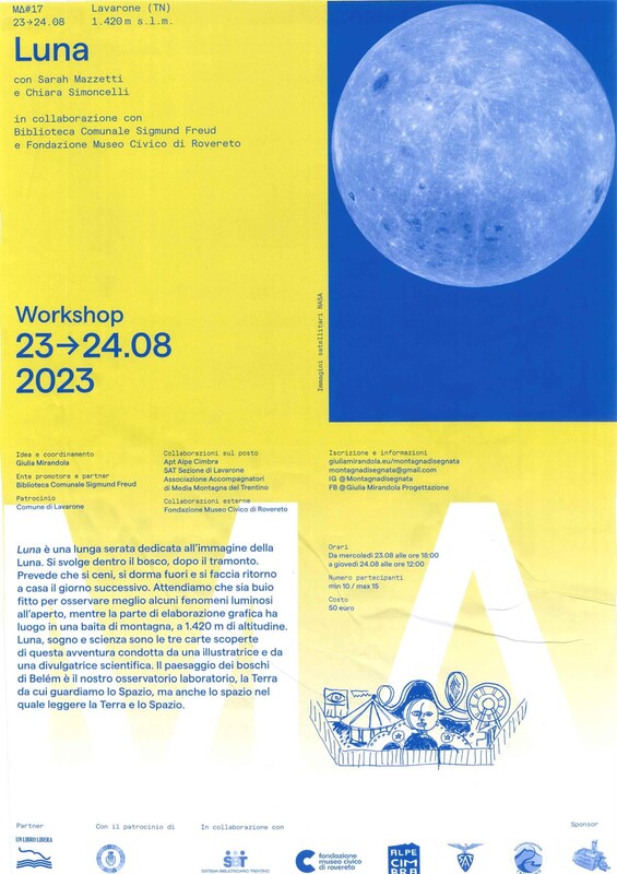 Luna, sogno e scienza sono le tre carte scoperte di questa avventura condotta da una illustratrice e da una divulgatrice scientifica. Il paesaggio dei boschi nella località „Belèm“ a Lavarone è il nostro osservatorio laboratorio, la Terra da cui guardiamo lo Spazio, ma anche lo spazio nel quale leggere la Terra e lo Spazio
