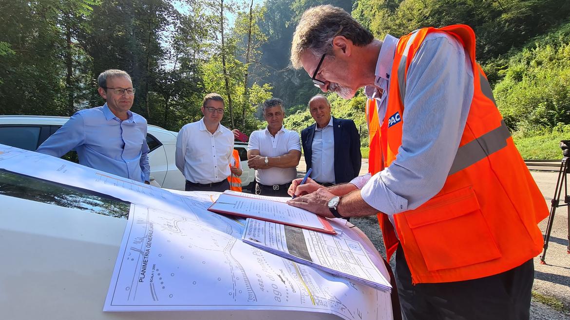 Alla breve cerimonia erano presenti il presidente della Provincia Maurizio Fugatti con il vicepresidente Mario Tonina e l’assessore Roberto Failoni, il sindaco di Comano Terme Fabio Zambotti, il dirigente del Servizio Opere stradali e ferroviarie Carlo Benigni con il progettista Paolo Nicolussi Paolaz, nonché il direttore tecnico di PAC spa Emilio Bianchi e gli altri referenti dell’associazione temporanea di impresa che si è aggiudicata la gara di appalto, formata appunto da PAC nonché da SIEI srl e Bouygues E&S Italia spa.