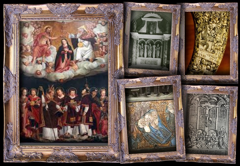 Tra le figure incise, oltre agli stemmi della coppia, sono rappresentate le cinque vergini sagge in contrapposizione alle cinque stolte. Le prime impersonano i cinque stati: Flandere, Engelant, Germania, Franckreich, Ithalia. Le altre rappresentano i cinque stati contrapposti a primi: La.Ferar Orth, Grecia e Tur, Prabannd, Hispani, Portugal. La coppia Trapp-Villingen è rappresentata in una interessante incisione votiva in cui sono raffigurati Osvaldo e Orsola in preghiera davanti al crocefisso.
