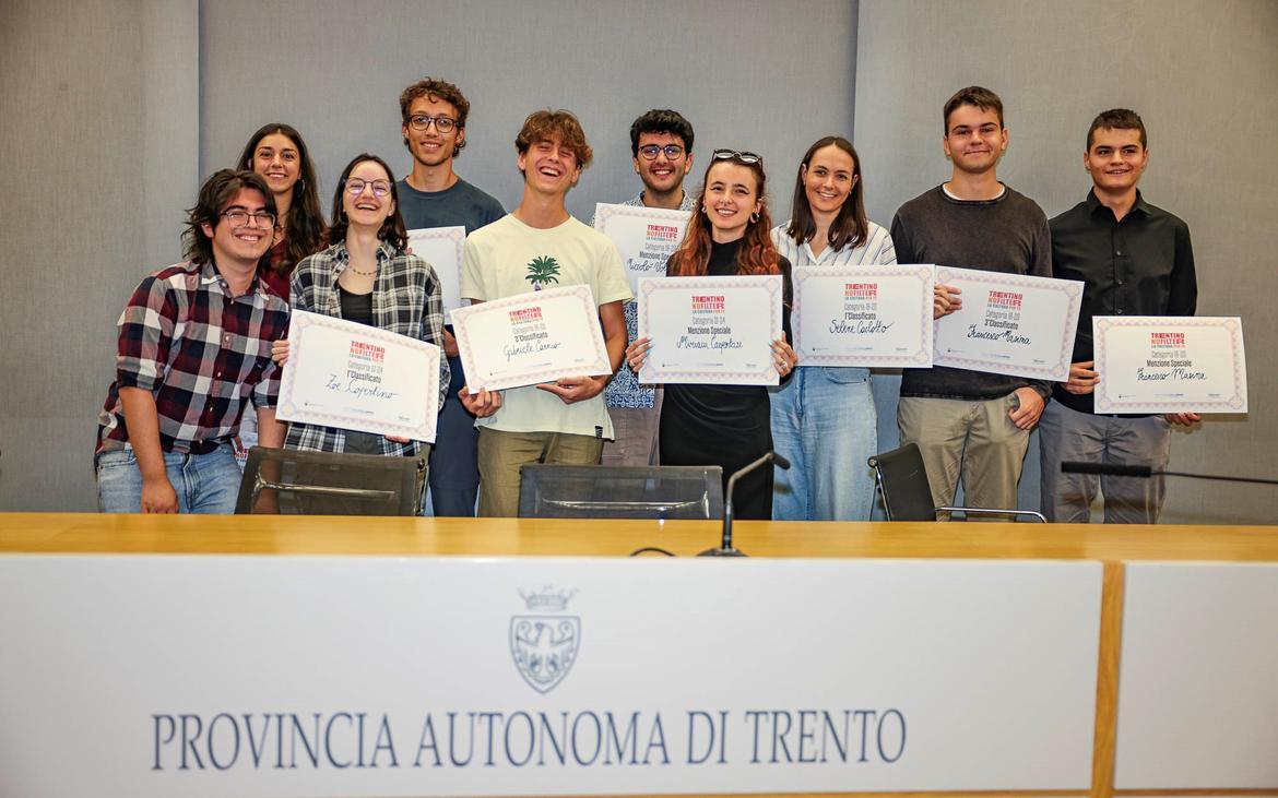 Per la categoria 18-20 anni, oltre alla prima classificata Selene Cailotto, si sono piazzati in seconda e terza posizione Gabriele Carnio e Francesco Masina che hanno ricevuto anche una menzione speciale, così come Niccolò Voltolini. Nella categoria dai 21 ai 24 anni, dietro a Zoe Copertino, si sono distinti Marco Deavi ed Evelyn Andreatti. Due in questo caso le menzioni speciali, assegnate ad Ismaele Gregori e a Miriam Carpentari. Ai sei giovani che con spiccata creatività sono riusciti a conquistare il podio nelle due categorie sono andati i premi in denaro di 2.500 euro, 1.500 euro e 500 euro, in ordine di classifica. L’iniziativa è stata promossa dall’Assessorato all’istruzione, università e cultura della Provincia autonoma di Trento, dal Dipartimento provinciale all’istruzione e cultura, con il coordinamento di Trentino Sviluppo – Trentino Film Commission e la collaborazione di Trentino Marketing.