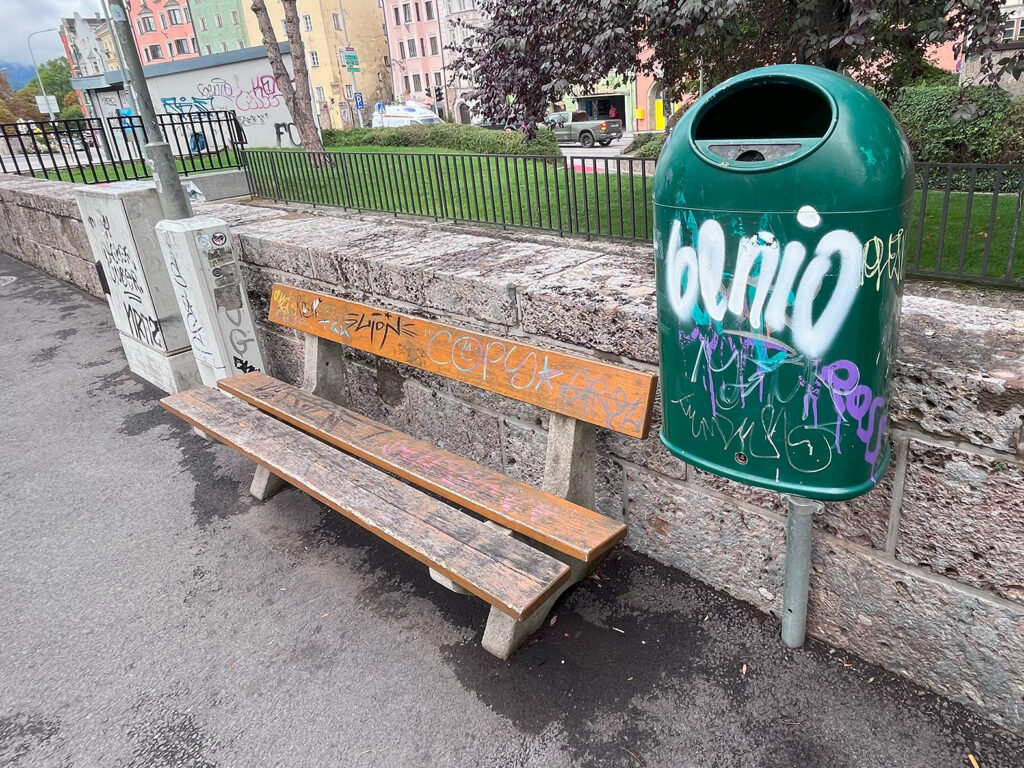 Die jüngste Vandalismuswelle in der der Tiroler Landeshauptstadt (siehe Beweisfotos) beweist für den Innsbrucker FPÖ-Stadtparteiobmann und Stadtrat Rudi Federspiel, dass es massive Anstrengungen bedarf die Täter endlich zu fassen: „Diese Vandalismusakte müssten schon seit Jahren effektiv bekämpft werden, denn illegale Graffitis sind nichts Anderes als sündteure Sachbeschädigungen, daher braucht es eine echte ‚Aktion scharf‘ der Exekutive“, fügt Federspiel an, der daran erinnert, dass die FPÖ bereits seit Jahrzehnten sich dafür stark gemacht hat, dass diese Szene bekämpft wird.