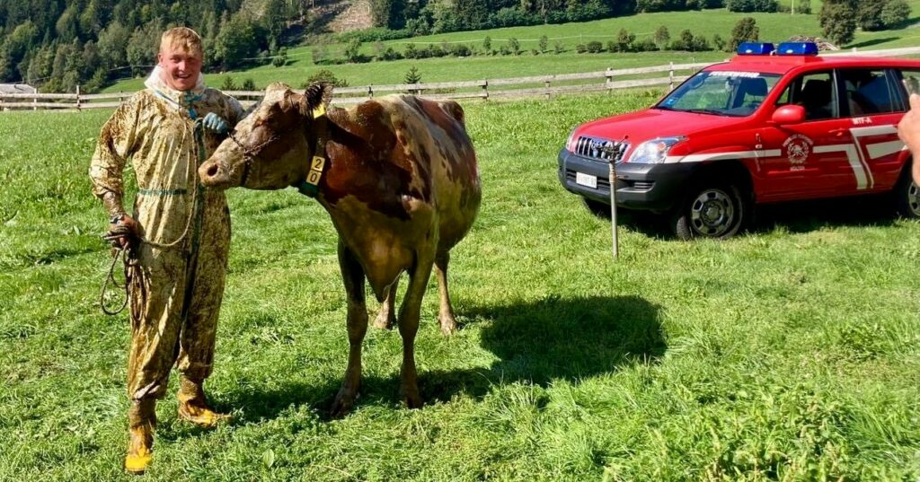 Eine Kuh drohte in einem Misthaufen zu versinken. Die Feuerwehrleute konnten das Tier unter vollem Körpereinsatz behutsam und unverletzt aus seiner misslichen Lage befreien, teilt die FF Mölten mit.