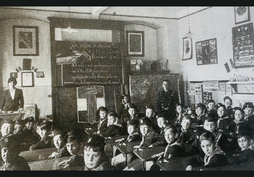 Wie in der Schule faschistische Indoktrination betrieben wurde, darüber gibt ein Schulzeugnis aus dem Schuljahr 1940/41 Auskunft. In diesem Schulzeugnis werden gleich zwei benotete faschistische Unterrichtsfächer angeführt: „Verschiedene Kenntnisse und faschistische Kultur“ (nozioni varie e cultura fascista) sowie „Geschichte und faschistische Kultur“ (storia e cultura fascista). Man kann sich ungefähr vorstellen, wie dem Regime ergebene und auf ihr berufliches Fortkommen bedachte italienische Lehrer versucht hatten, die Kinder ideologisch zu drillen.