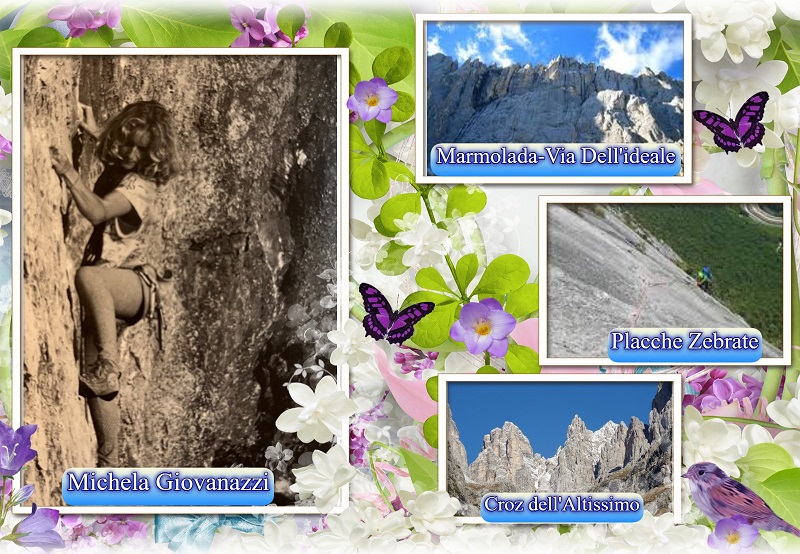 Roveretana, classe 1960, Michela Giovanazzi inizia ad arrampicare nel 1983 con salite nel Basso Sarca su Placche Zebrate e Monte Colodri, ripetendo tutte le vie classiche. Frequenta soprattutto le falesie, tra le preferite quelle di Arco e dintorni e di Finale Ligure ma anche Boux, Calanques e Montecarlo nel Sud della Francia raggiungendo notevoli limiti di difficolta. Verso la fine degli anni Ottanta partecipa alle prime gare di arrampicata ma rimane delusa per i risultati ottenuti così nell’estate del 1988 decide di fare qualche via in montagna e dopo alcune cime di allenamento sul Gran Pilastro e in Presanella, sale la “Via dell’ideale” sulla parete sud della Marmolada, la “Via Vinatzer” con “Variante Messner” e nelle Dolomiti di Brenta sale il “Diedro Armani” al Croz dell’Altissimo. Seguiranno altre scalate classiche nel Gruppo di Sella e Piz de Ciavazes.