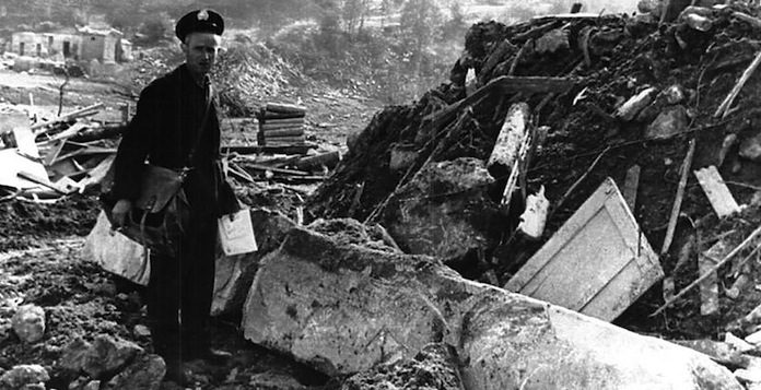 Quell’appuntato era Rinaldo Aste, ma i cadaveri non erano dei suoi famigliari. Quelli, purtroppo, non sarebbero mai più stati ritrovati. Infatti, dopo essere sceso a valle col cuore in gola, Rinaldo era corso affannosamente in paese, verso la sua casa dove la sera prima aveva lasciato la moglie e i due figlioletti. Ma lì non c’era più nulla: era rimasta solo un’enorme, indistinta spianata di fango e ghiaia. Come in un incubo, l’uomo iniziò allora a girovagare, disperato e stordito sulle macerie del paese. Lo fece per alcune ore, poi sfinito dal dolore si accasciò a terra, venne quindi soccorso e portato in ospedale.