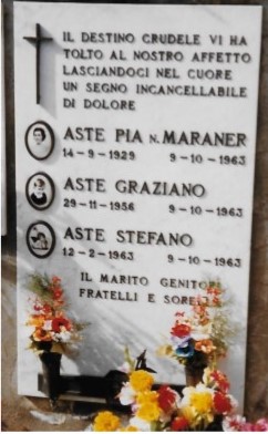 Passati più di dieci anni da quella conversazione, dopo diversi cambi di sede l’appuntato Rinaldo Aste era giunto nella valle del Piave. Si stava bene lì, a Longarone, un paese noto in quegli anni per via della sua diga costruita da poco, un capolavoro della tecnica dicevano, una delle più grandi d’Europa. Un posto tranquillo a 18 chilometri da Belluno, un posto dove portare anche la famiglia. Difatti, assieme alla moglie Pia e al piccolo Graziano di due anni, Rinaldo aveva preso affitto in via Marconi, nella parte alta del paese. E lì, in quel piccolo, ma grazioso appartamento, nel febbraio del 1963 era poi nato anche il secondogenito, Stefano.