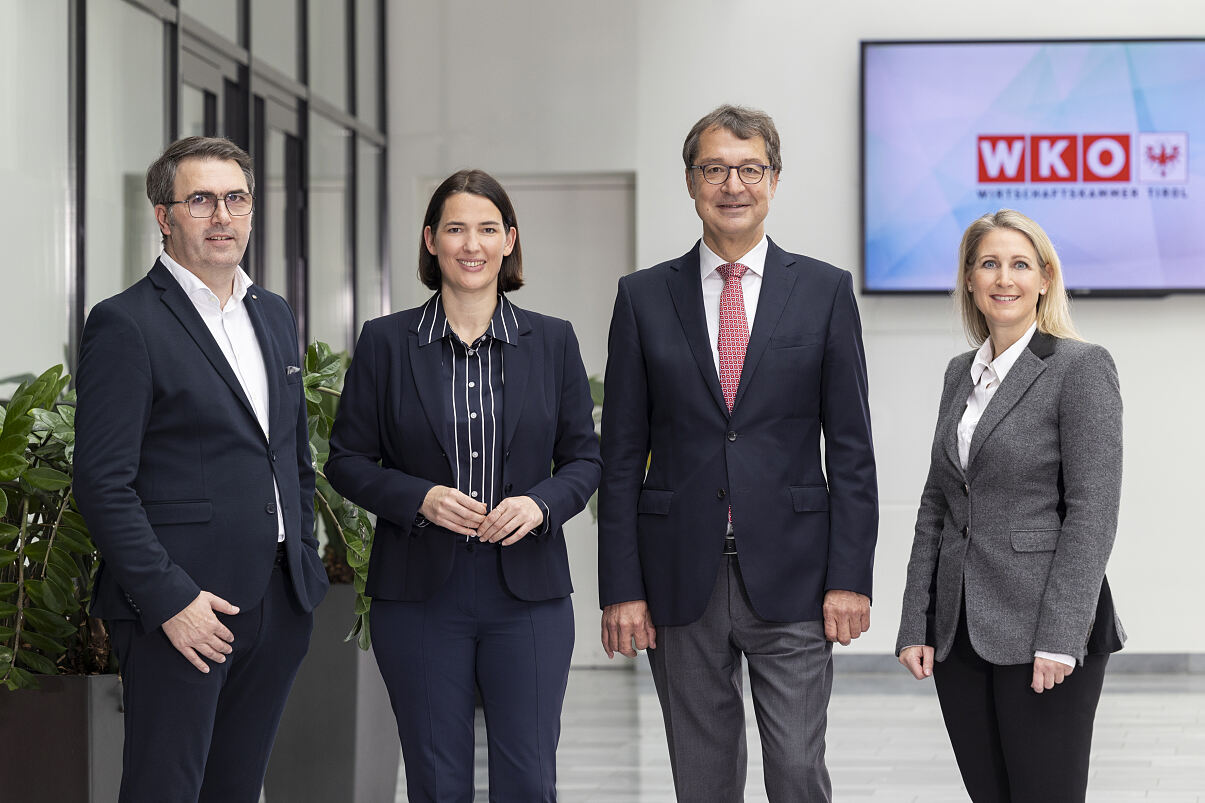 Die Präsidentin will sich mit voller Energie und Leidenschaft auf diese Schwerpunkte konzentrieren. Dabei zählt sie auf die Unterstützung des Teams in der WK Tirol: Dazu gehören alle Funktionär:innen in den Fachgruppen und Sparten, in den Bezirken, die Mitarbeiter im Haus mit Direktorin Evelyn Geiger-Anker an der Spitze und natürlich die Vizepräsident:innen im Präsidium. Dieses ist nicht zufällig mit Martina Entner, Manfred Pletzer, Anton Rieder und Martin Wetscher besetzt. Jedes einzelne Präsidiumsmitglied bringt in seinem Bereich hohe Expertise mit und sorgt damit für einen Mehrwert für die Tiroler Mitgliedsbetriebe. Martina Entner deckt die Themen Regionalität, Tourismus und Frau in der Wirtschaft ab, Manfred Pletzer ist ausgewiesener Experte bei Energie, Nachhaltigkeit und Bildung, Anton Rieder ist einer der führenden Bauprofis in unserem Land und Martin Wetscher ist die Ortskernbelebung und der Wandel im Handel ein großes Anliegen.