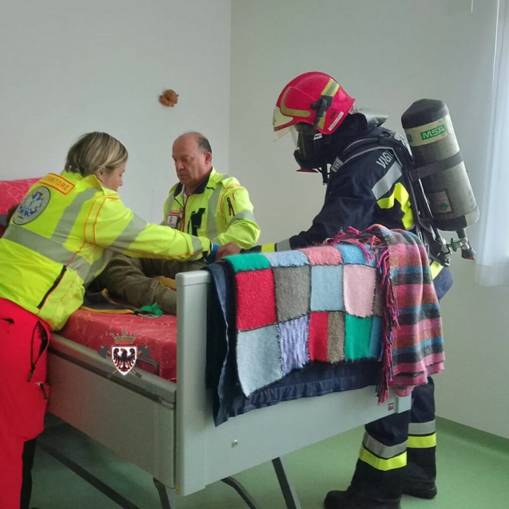 I pompieri, affiancanti dal Soccorso Alpino e dal Corpo Volontari Valle di Non, si sono cimentati in una prova di evacuazione del centro socio-educativo Il Gelso a Samoclevo.