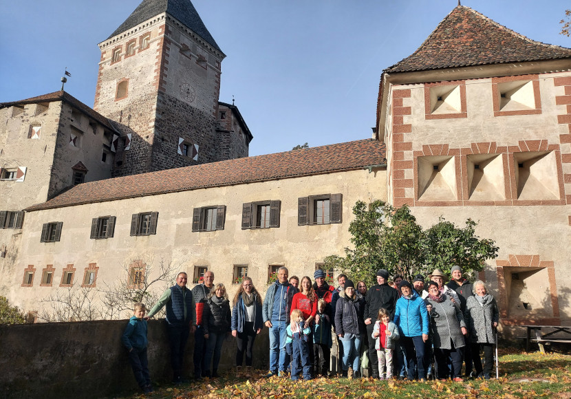 Zunächst wanderten die Vertreter bei ihrem Treffen gemeinsam zur Trostburg, wo Therese Gröber die interessierte Gruppe bereits erwartete und die Grußworte des Präsidenten des Südtiroler Burgeninstitutes Carl Philipp von Hohenbühel überbrachte. Gekonnt führte die Trostburg-Tresl durch die mittelalterliche Burg, die hoch oben über dem Eisacktal mit einem prächtigen Ausblick bestach. Nach einem kleinen Umtrunk wurden die Gespräche über die Herausforderungen der beiden Kleingemeinden bei einem Törggelen am Unterfinserhof in Lajen-Ried fortgesetzt.