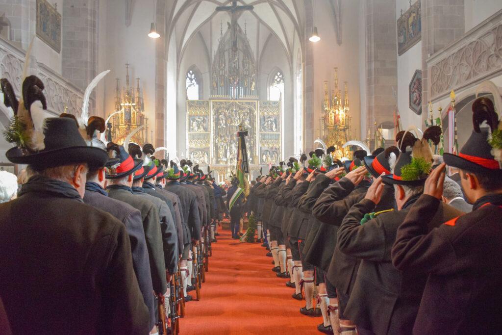 Zahlreiche Schützen aus allen Teilen Tirols folgten der Einladung der Schützenkompanie „Franz Höfler“ Lana zur Gedenkfeier nach Niederlana, berichtet die Schützenkompanie. Nachdem die Front durch den Landeskommandant Mjr. Roland Seppi, der Vize-Bürgermeisterin Valentina Andreis und der Gedenkrednerin Martha Stocker abgeschritten wurde, marschierten die anwesenden Schützen zur Pfarrkirche. In diesem Jahr war auch die Bürgerkapelle Lana mit dabei, die ihre Cäcilien-Feier abhielt. Die heilige Messe wurde vom Deutschorden-Althochmeister P. Bruno Platter OT feierlich zelebriert und von den Schützen sowie der Bürgerkapelle feierlich mitgestaltet.