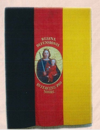Sul lato principale, una raffigurazione della Madonna che con una mano sostiente il Bambino, con l’altra regge la spada. Maria „Regina Defensionis“, regina della difesa. Sul retro, l’insegna araldica dell’Arciduca Giovanni e la scritta „Per Iddio, l’Imperatore e la Patria“