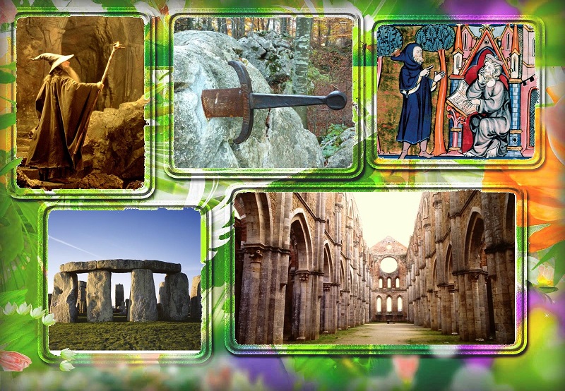 Alla nascita gli era stato dato, secondo l’Historia Brittonum il nome di Emrys (o Ambrosius), ed era avvenuta a Caer-Fyrddin (l’attuale Carmarthen, nel sud del Galles). Nella Historia Brittonum, attribuita al monaco Nennius (anche se la critica più recente tende a considerare l’opera il prodotto di più mani), si parla di Re Vortigern, e del giovane ragazzo profeta Ambrosius (donde il Merlino Ambrosius di Geoffrey di Monmounth), che vede i due draghi sotto la torre del re, che crollava sistematicamente. Il primo riferimento a Merlino è dunque in questa Historia Brittonum, attribuita a Nennius, un testo latino del 796 d.C., basato su precedenti scritti del monaco gallese Gildas. Myrddin appare poi in alcuni resoconti gallesi (Armes Prydein, Y Gododdin) dell’inizio del X secolo come un profeta, ma il suo ruolo diviene presto quello di mago, profeta e consigliere, incantatore, attivo in tutte le fasi del regno di Re Artù.