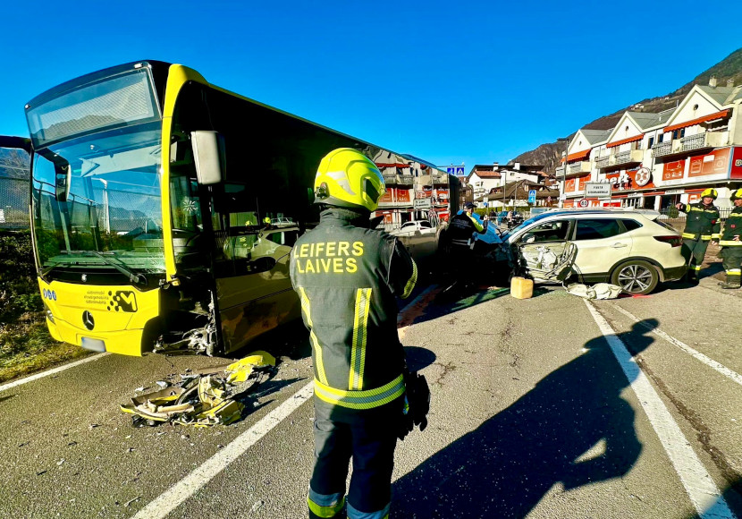 Bei Steinmannwald war es zu einer Kollision zwischen einem Linienbus und einem Pkw gekommen, berichtet die FF Leifers. Dabei haben sich sechs Personen verletzt. Die Feuerwehrleute unterstützten den Rettungsdienst und kümmerten sich um die Sicherungs- und Aufräumarbeiten an der Unfallstelle. Im Einsatz standen auch das Weiße und Rote Kreuz sowie die Behörden.