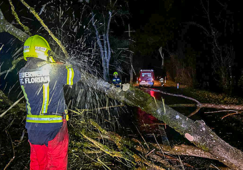 Auch in der Steiermark gab es zahlreiche Feuerwehreinsätze: Im obersteirischen Bezirk Liezen standen rund 20 Wehren mit 280 Männern und Frauen im Unwettereinsatz, hieß es in einer Aussendung des Bereichsfeuerwehrkommandos Liezen. Die Ausläufer des Sturmtiefs zogen bis nach Graz, wo gegen 1.00 Uhr Böen über das Stadtgebiet peitschten. Im Bezirk Liezen waren zahlreiche Bäume auf Straßen und Bahngleise gestürzt. Durch den Schneefall in höheren Lagen kam es zu Verkehrsunfällen und der Niederschlag in den Tälern sorgte für teils überschwemmte Keller. Davon betroffen ist etwa auch das Seniorenpflegeheim Gröbming.