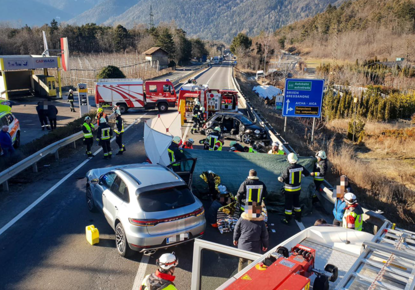 Kurz nach 10.35 Uhr wurden die Einsatzkräfte alarmiert. Wie die Feuerwehr Schabs berichtet, ist es auf der Höhe der Tankstelle Ladestatt zu einem Zusammenstoß zwischen einem SUV und einem Kleinwagen gekommen. Dabei wurde eine Person im Fahrzeugwrack eingeklemmt und musste so von der Feuerwehr befreit werden. Anschließend wurde sie mit schwersten Verletzungen vom Rettungshubschrauber in das Krankenhaus von Bozen gebracht. Die drei weiteren Personen wurden mit Verletzungen unbestimmten Grades ins Brixner Krankenhaus gebracht.Â