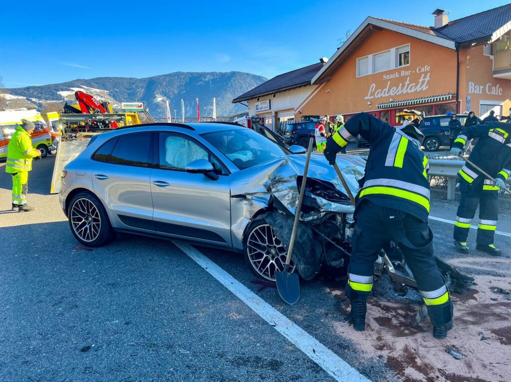 Kurz nach 10.35 Uhr wurden die Einsatzkräfte alarmiert. Wie die Feuerwehr Schabs berichtet, ist es auf der Höhe der Tankstelle Ladestatt zu einem Zusammenstoß zwischen einem SUV und einem Kleinwagen gekommen. Dabei wurde eine Person im Fahrzeugwrack eingeklemmt und musste so von der Feuerwehr befreit werden. Anschließend wurde sie mit schwersten Verletzungen vom Rettungshubschrauber in das Krankenhaus von Bozen gebracht. Die drei weiteren Personen wurden mit Verletzungen unbestimmten Grades ins Brixner Krankenhaus gebracht.Â