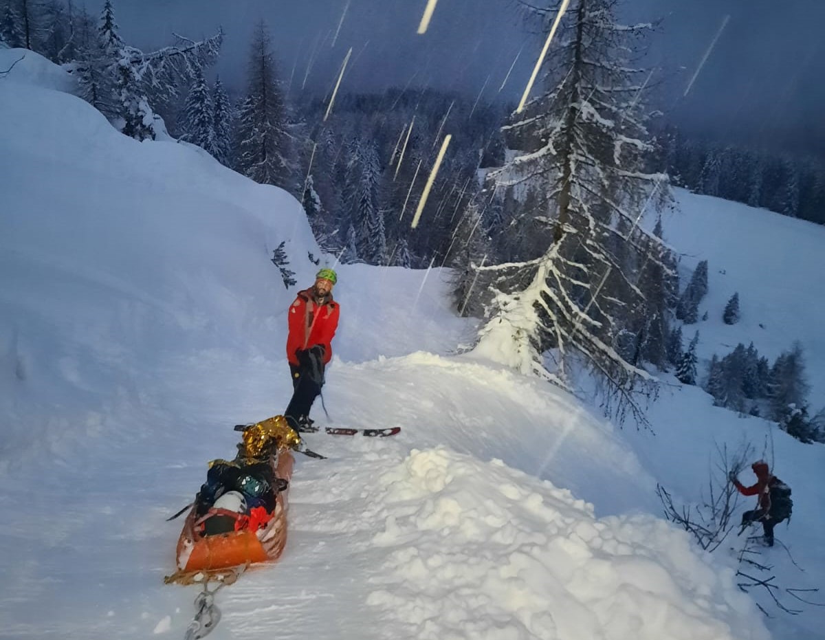La Centrale Unica di Trentino Emergenza ha dunque allertato la Stazione di San Martino di Castrozza per l’invio di personale da terra. Un operatore del Soccorso Alpino e Speleologico Trentino, insieme a 4 soccorritori del Soccorso Alpino della Guardia di Finanza di Passo Rolle, hanno raggiunto quota 1.800 metri con i quad, fintanto che il terreno innevato lo permetteva, per poi proseguire con gli sci d’alpinismo.