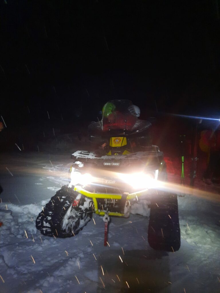 La Centrale Unica di Trentino Emergenza ha dunque allertato la Stazione di San Martino di Castrozza per l’invio di personale da terra. Un operatore del Soccorso Alpino e Speleologico Trentino, insieme a 4 soccorritori del Soccorso Alpino della Guardia di Finanza di Passo Rolle, hanno raggiunto quota 1.800 metri con i quad, fintanto che il terreno innevato lo permetteva, per poi proseguire con gli sci d’alpinismo.