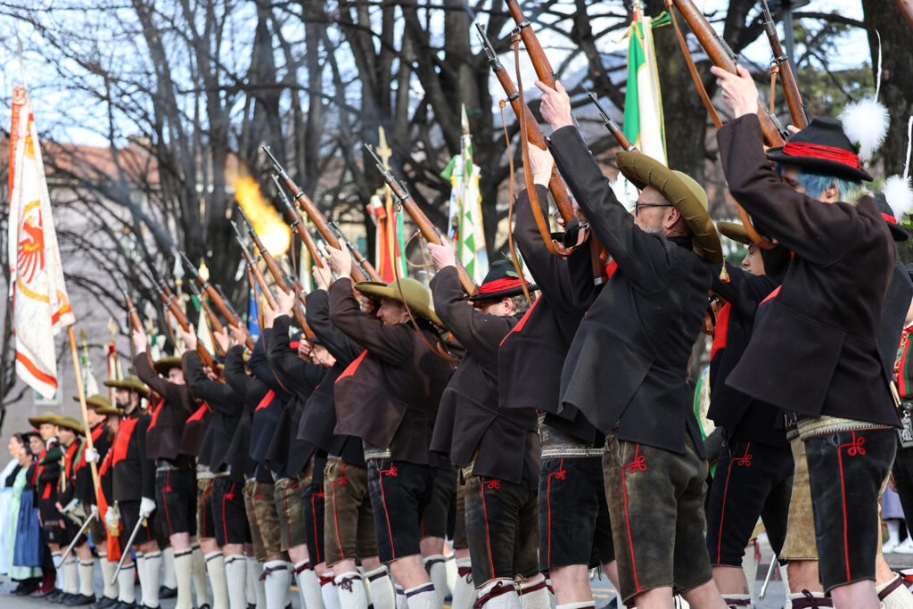 Die Schützenkompanie Meran feuerte die Ehrensalve ab, ehe die Tiroler Landeshymne abgespielt und die Kränze für die Freiheitskämpfer niedergelegt wurden. Damit erwiesen die anwesenden Schützen dem Volkshelden Andreas Hofer und seinen Mitstreitern die höchste Ehrerweisung in einer Zeit, in der Demut gegenüber der Tiroler Geschichte und Identität mehr denn je notwendig ist.