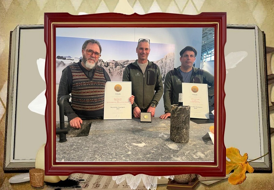 L’azienda di scalpellini südtirol.stein GmbH e lo scultore Othmar Prenner (dingeundursachen) hanno ricevuto alla Fiera Internazionale dell’Artigianato di Monaco (IHM) il Bayerischen Staatspreis nella categoria Tecnologia e Design. Il Premio viene assegnato dal Ministero bavarese dell’Economia dal 1952 per design speciali e risultati tecnici nel settore dell’artigianato che sono ben al di sopra della media. Tobias Gotthardt, segretario di Stato presso il Ministero bavarese per l’economia, lo sviluppo regionale e l’energia, ha consegnato i premi statali bavaresi 2024 per design speciali e risultati tecnici nel settore dell’artigianato durante la cerimonia di premiazione ufficiale durante l’IHM a Monaco.