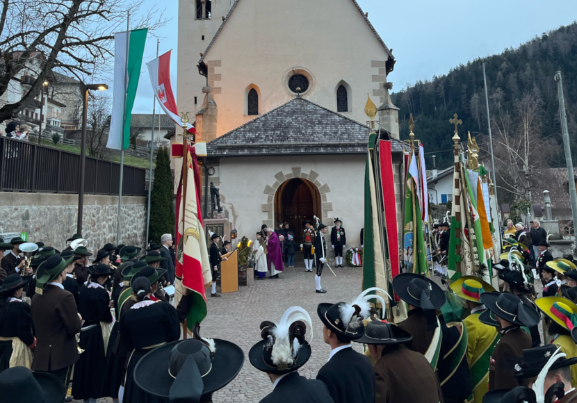 Der Bezirkstag des Schützenbezirkes Südtiroler Unterland begann mit der Heiligen Messe in der Pfarrkirche von Truden, abgehalten von Pfarrer Heinrich Guadagnini. Anschließend stellten sich die Formationen auf dem Kirchplatz auf, wo der Gefallenen und der im vergangenen Jahr verstorbenen Kameraden gedacht wurde. Wie in einer Aussendung berichtet wird, hielt Bezirksmajor-Stellvertreter Lukas Varesco eine Gedenkrede, in der er an die Opfer unserer Vorfahren gedacht hat und uns dazu ermahnte, diese als Vorbild zu nehmen. Nach der Ehrensalve der Ehrenkompanie Truden und der Kranzniederlegung, welche von der Musikkapelle Truden musikalisch umrahmt wurde, marschierten die Formationen zum Vereinshaus ab, wo der offizielle Teil der Versammlung abgehalten wurde. Umrahmt wurde dieser von der Bläsergruppe der Musikkapelle Truden.