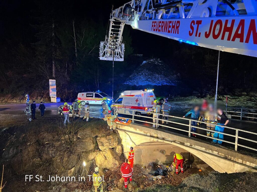 Um 00.32 Uhr wurde angezeigt, dass eine Person in Fieberbrunn von einer Brücke gestürzt sei. Vor Ort konnten zwei 53-jährige Damen aus Deutschland im dortigen Bachbett aufgefunden werden. Die beiden waren schwer verletzt und wurden von der Feuerwehr aus dem Wasser geborgen. Diese wurden von der Rettung ins Krankenhaus nach St. Johann gebracht, berichtet die Polizeiinspektion Fieberbrunn.