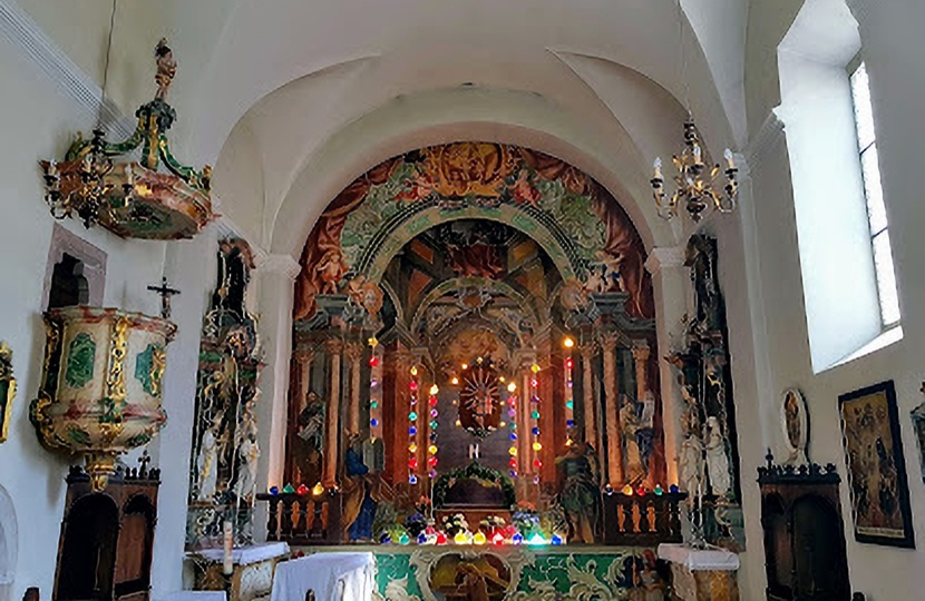 Das Heilige Grab ist ab Gründonnerstag bis einschließlich Weißen Sonntag, 7. April, zugänglich. In der Kirche liegt eine Beschreibung des Grabes von Albert Innerhofer zum Mitnehmen aus.