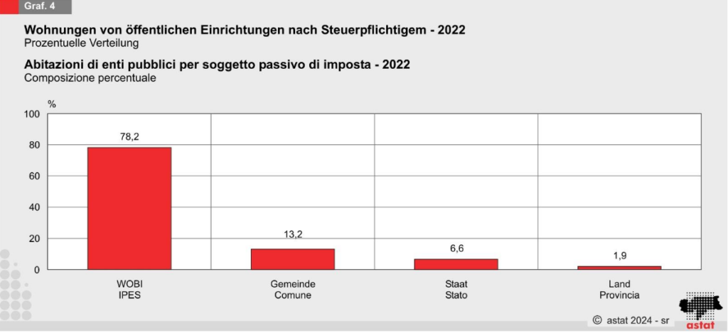 Öffentliche Einrichtungen spielen eine signifikante Rolle in der Wohnungssituation Südtirols. Sie dienen nicht nur als Mieter oder Eigentümer von Wohnungen, sondern prägen auch die Verteilung der verschiedenen Wohnungsarten in den Gemeinden. Die Analyse zeigt, dass öffentliche Einrichtungen in 6,0 Prozent der Wohnungen als Steuerpflichtige auftauchen. Dabei dominieren WOBI-Wohnungen mit einem Anteil von 4,5 Prozent. Das Wohnbauprojekt WOBI bietet preiswerteren Wohnraum für Menschen, die weniger Einkommen haben, und spielt daher eine bedeutende Rolle in der sozialen Wohnungsversorgung.