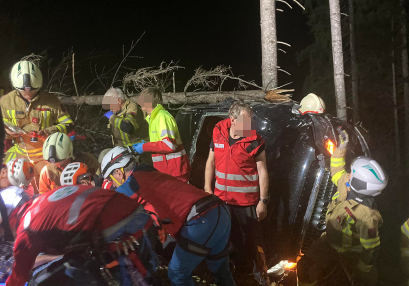 Gegen 20.15 Uhr war ein 56-jähriger Autofahrer zusammen mit einem 42-Jährigen (Beifahrer) unterwegs. In einer Kurve kam der Fahrer plötzlich über den Straßenrand hinaus und das Auto stürzte rund 40 Meter über eine steile, bewaldete Böschung ab. Dabei überschlug sich das Fahrzeug mehrmals, teilt die Polizei Schwaz mit.Â