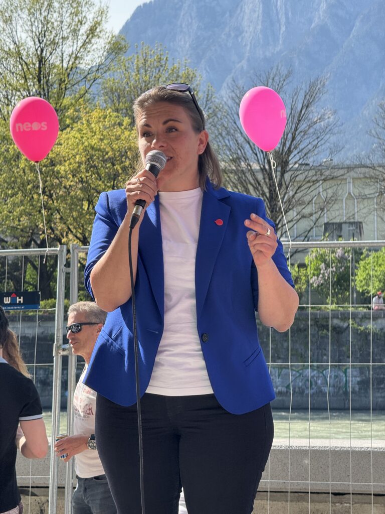 NEOS-Spitzenkandidatin Julia Seidl mobilisierte ihre Wähler am Sonnendeck. – Foto: Credit NEOS