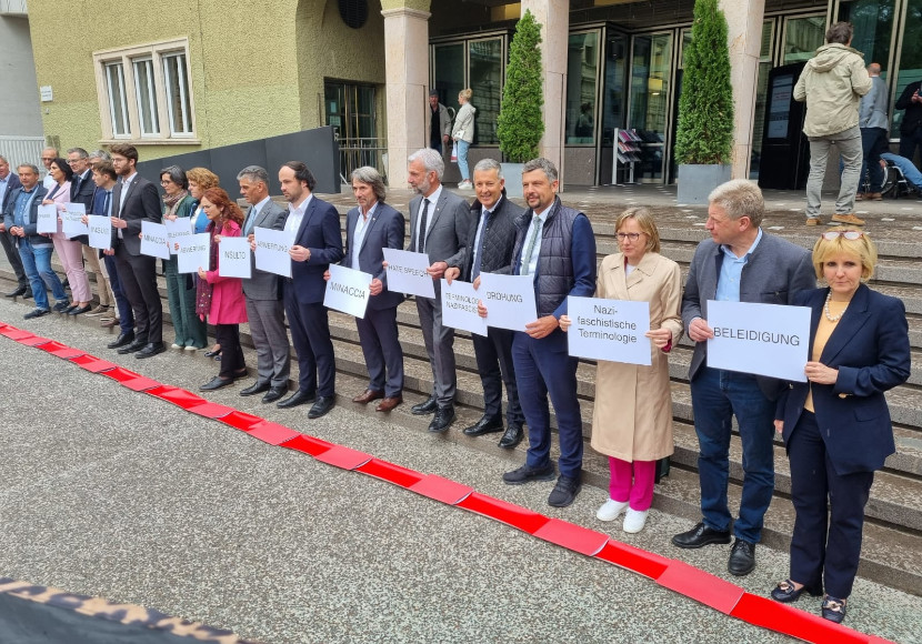 „Um unsere Ablehnung auch zu betonen, haben wir heute vor dem Landtag eine symbolische rote Linie gezogen, die es nicht zu überschreiten gilt. Damit wollen wir zu verstehen geben, dass wir Hassrede, Abwertungen, Beleidigungen, Hetze und dergleichen, sei es im politischen aber auch im gesellschaftlichen Diskurs, entschieden ablehnen. Und dass Jürgen Wirth Anderlan diese rote Linie mit seinen Aussagen eindeutig überschritten hat“, heißt es in einer Aussendung der SVP.
