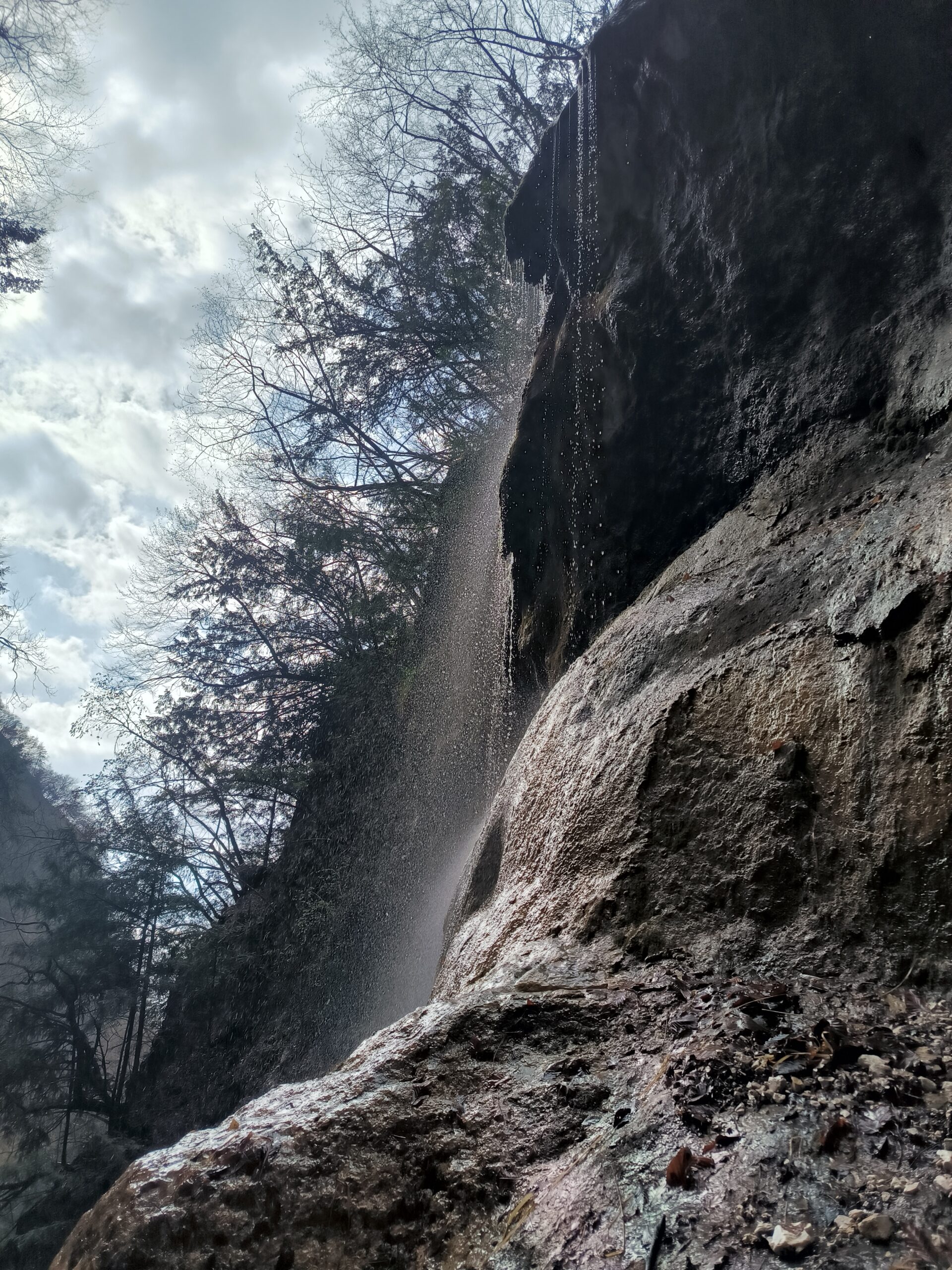 Da subito essa si apre alla nostra vista quando scendendo a picco dalla roccia crea un bacino limpido da dove apre la prima di tre lunghe scale che consentono di risalire il monte di Mezzocorona. Per un lungo tratto l’acqua lascia spazio alla roccia, che si percorrere sempre però accompagnati dal suo suono in lontananza. Poi, quando si entra nell’altro della roccia, il profondo canyion creato dall’acqua ci immerge direttamente nel suo mondo. Ora siamo in balia della sua forza. Attratti dal suo fragore ci inerpichiamo lungo le pareti levigate della roccia, i cui colori e le cui striature si mostrano in una bellezza senza tempo, creata dalla carezza dell’acqua.