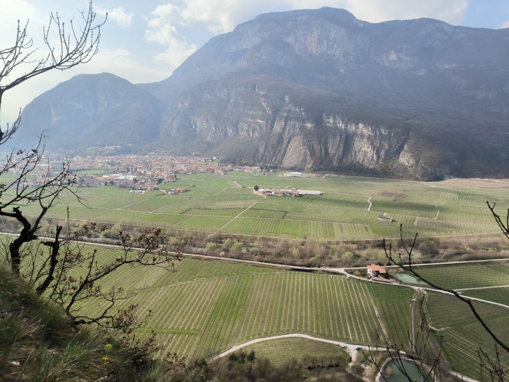 E ci incamminiamo, lungo il letto della sua strada, tortuosa. Saltiamo, tra un masso e l’altro lungo il torrente, accompagnati dal canto assordante dell’acqua fino a che non torniamo alla luce del sole. Usciamo di nuovo sul terreno boscoso della montagna, lasciandoci alle spalle l’acqua, fino a quando non raggiungiamo il monte di Mezzocorona e guardiamo la vallata, ora ricoperta di vigneti, un tempo sommersa dalla regina di quella giornata di cammino, l’acqua.