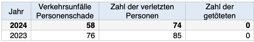 Zwischen letzten Freitag und Pfingstmontag ereigneten sich eine Reihe zum Teil schwerer Verkehrsunfälle. Die Zahl der Verkehrsunfälle mit Personenschaden ist trotz des schönen Wetters und damit verbunden relativ starken Motorrad- und Ausflugsverkehr im Vergleich zum Vorjahr deutlich zurückgegangen. Bei den von der Polizei zu bearbeitenden Verkehrsunfällen waren als Hauptunfallursache einmal mehr die nicht angepasste Geschwindigkeit, Vorrangverletzungen, Unachtsamkeit/Ablenkung, Alkohol und Fahrfehler festzustellen.