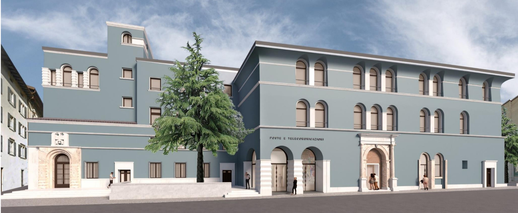 Il piano terra pensato come spazio permeabile, di accoglienza e socializzazione, con l’ufficio postale e le funzioni commerciali. Il primo piano e il piano ammezzato totalmente dedicati al co-working mentre il secondo piano e il sottotetto riservati alla funzione residenziale. Così si configurerà Palazzo delle Poste dopo l’intervento di riqualificazione e restauro svelato oggi a Palazzo Geremia. La progettazione è a cura del gruppo composto dall’architetto Jacopo della Fontana (Dzu), dall’architetto Alberto Winterle (W+W) e dall’ingegner Sergio Sciarini (Esa Engineering).