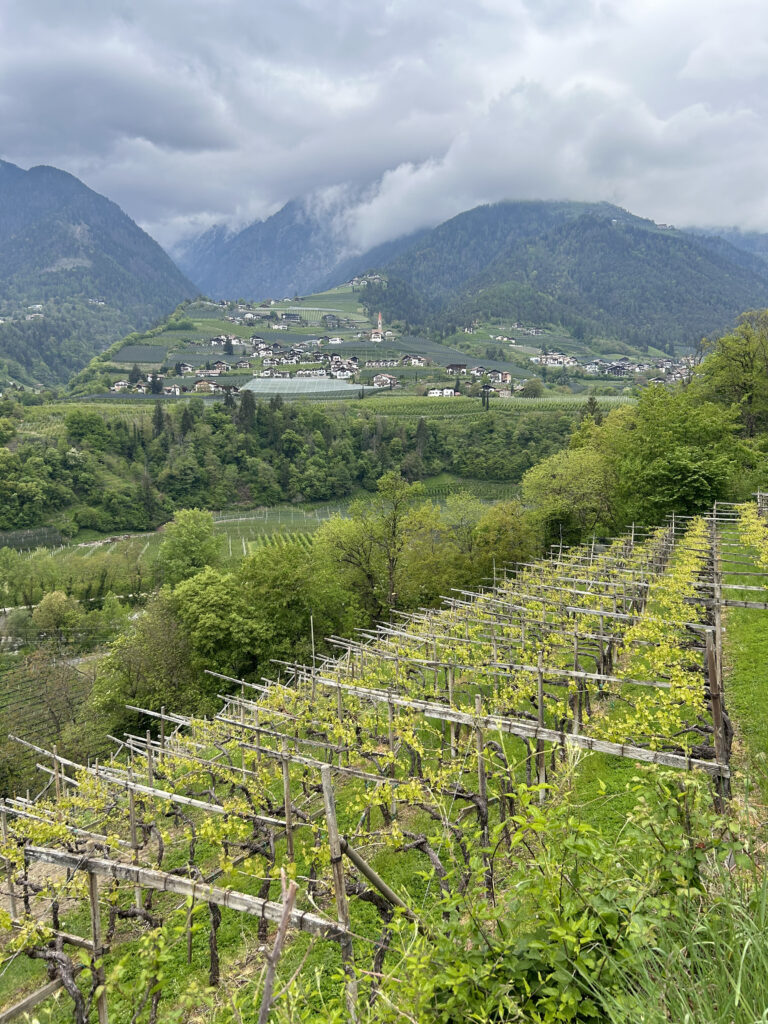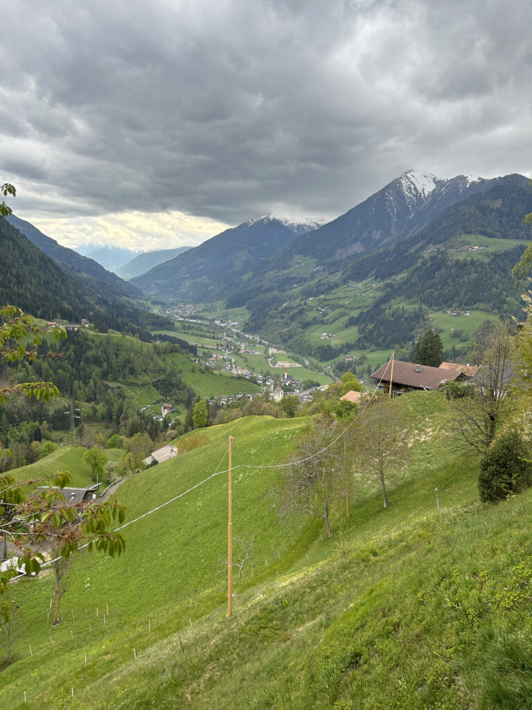 Qui termina la Maiser Waalweg che, senza soluzione di continuità, prende ora il nome di Passerweg. La roggia cede il posto ad una larga pista ciclabile, principalmente sterrata, che ci porterà fino a Sankt Martin, nostra prossima meta. Questo tratto, seppure agevole e veloce, ci appare piuttosto noioso e monotono, se confrontato con la bellezza e la varietà dei paesaggi incontrati nei giorni precedenti. Pazienza. Proseguiamo.