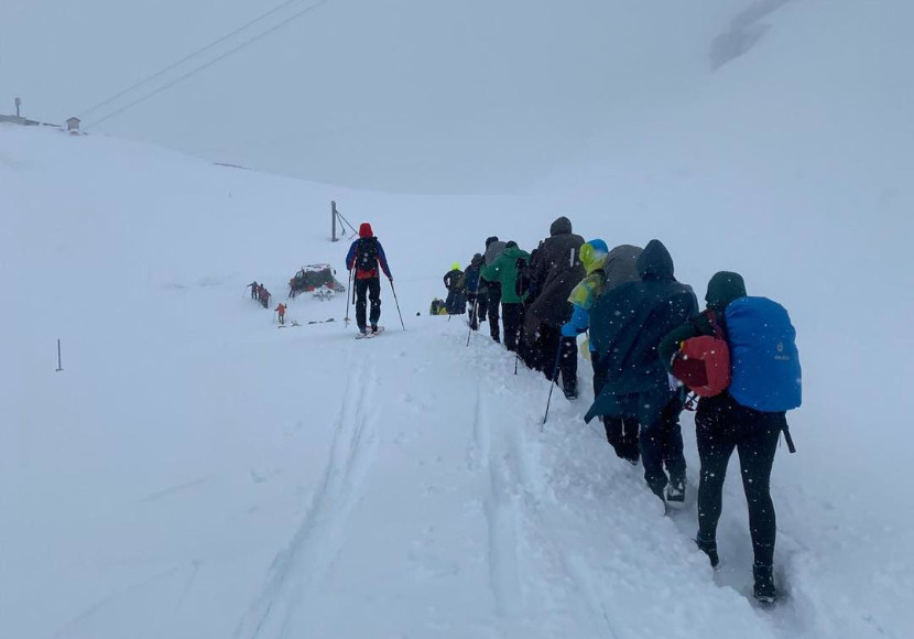 Aus mehreren Gruppen seien Notrufe abgesetzt worden, teilte ein Sprecher der Bergwacht weiter mit. Sie seien aufgrund von Witterung und Neuschnee auf etwa 2.500 Metern Höhe etwa 900 Meter vor dem Sonnalpin nicht mehr weitergekommen.